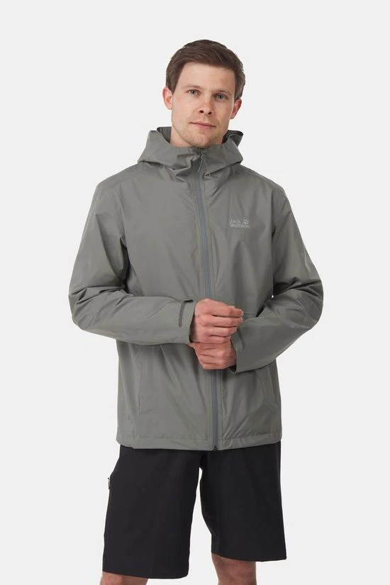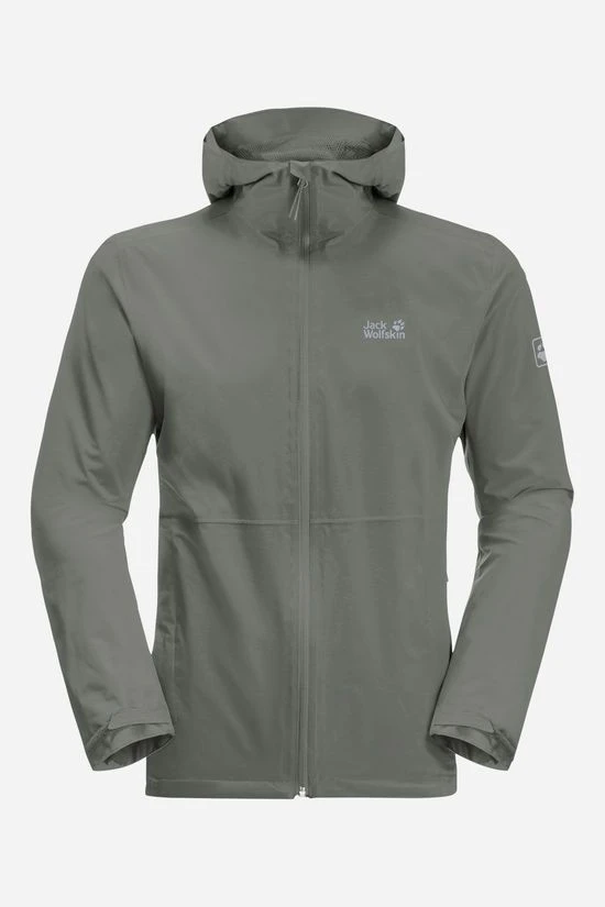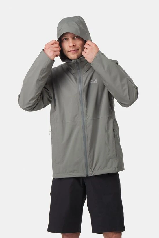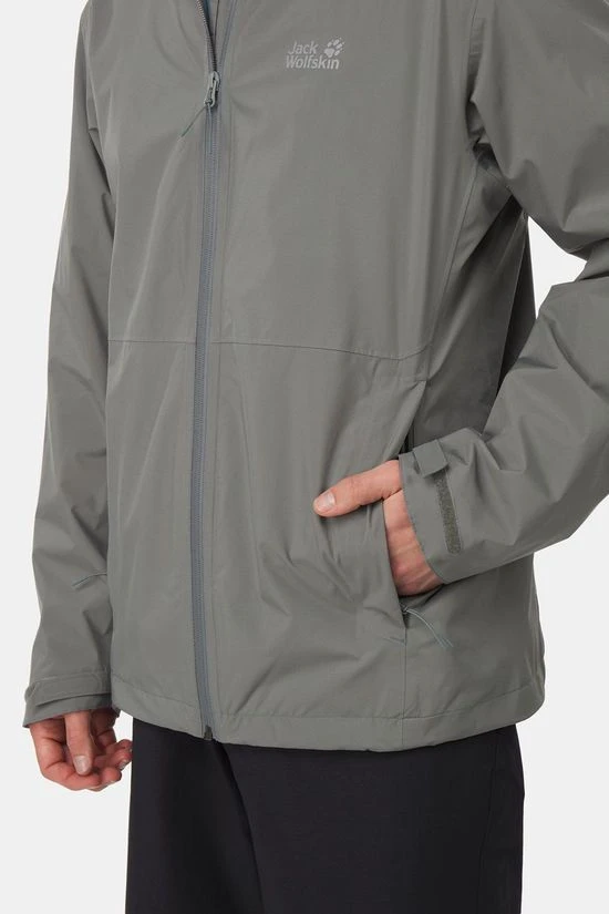 - Bij de uitrusting hebben heeft Jack Wolfskin zich geconcentreerd op de wezenlijke zaken: capuchon en twee heupzakken. In een ervan kun je het jack heel klein opbergen. Zo past het in elke rugzak en elke hipbag.