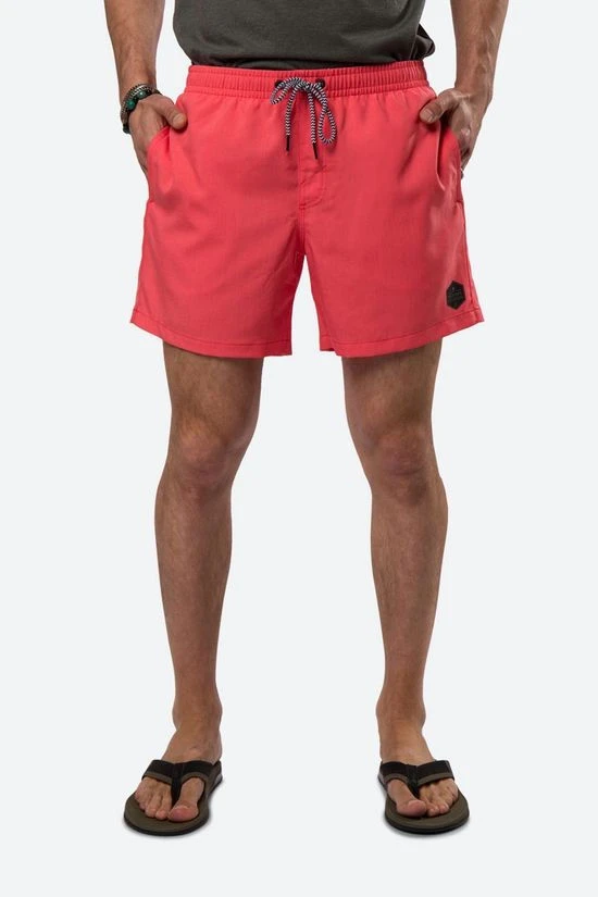 - Deze korte 16-inch swimshort valt tot halverwege het bovenbeen en heeft een elastische tailleband met trekkoordje.