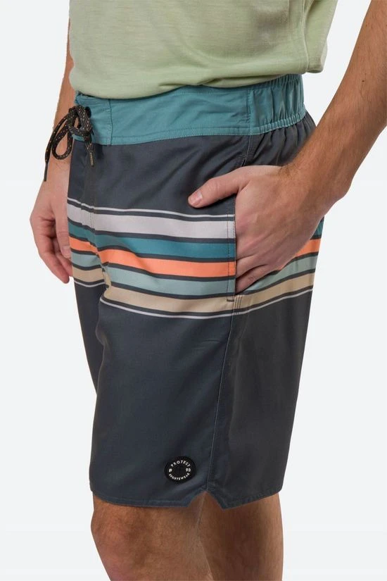 - Deze zwemshort is bedrukt met een gestreepte print.